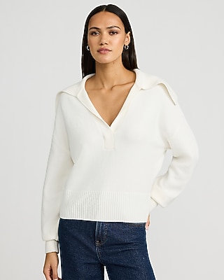 Ann Taylor Petite Collared Midi Sweater Dress Winter White Women's