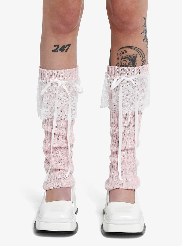 Pastel Pink Lace & Ribbon Leg Warmers