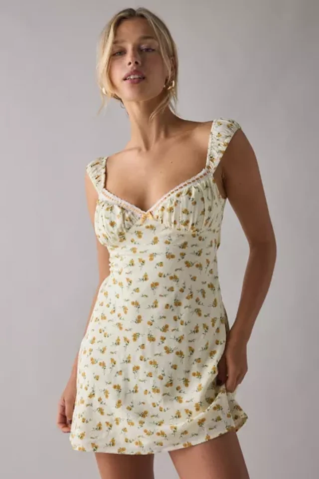 Stella Plus Galloon Lace and Mesh Soft Cup Babydoll with Connected Bodysuit Inside Flyaway Front