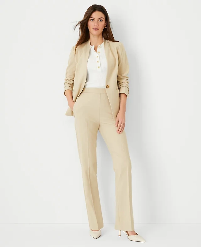 Ann Taylor The Tall Side Zip Straight Pant Bi-Stretch Toasted Oat Women's
