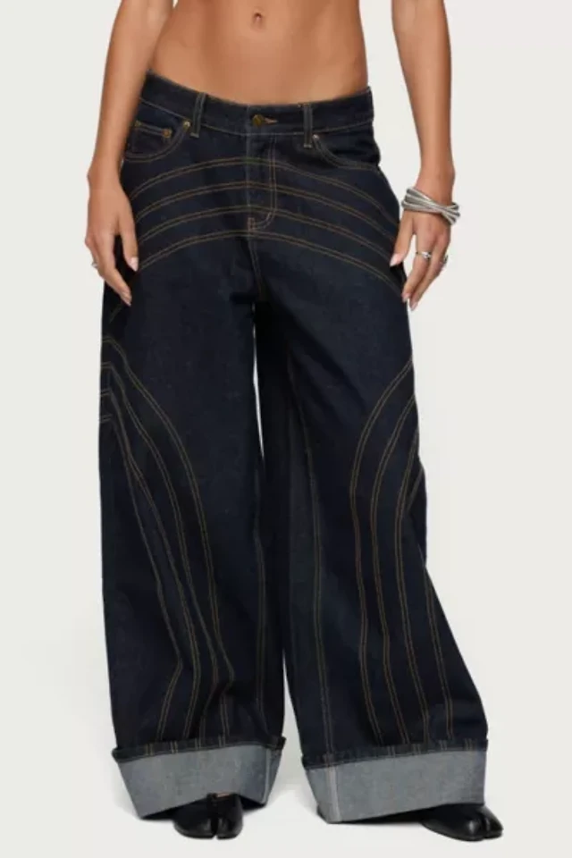 Edikted Cuffed Low Rise Wide Leg Jeans