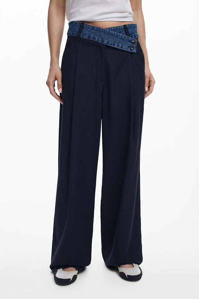 Mango Women's Stitching Detail High-Waisted Culotte Jeans
