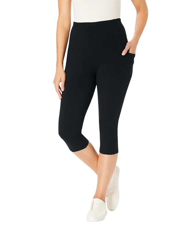 Woman Within Plus Stretch-Cotton Knit Pull-On Pocket Capri Leggings