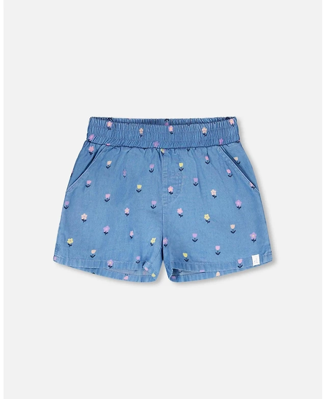 Deux par Baby Girls Chambray Shorts Blue Flower Print