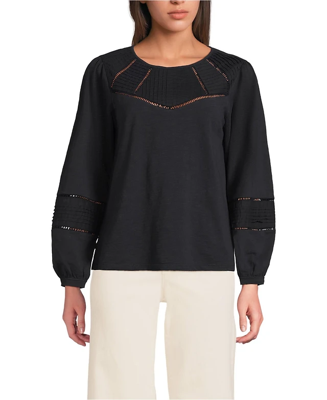 Lands' End Women's Long Sleeve Slub Pintuck Top