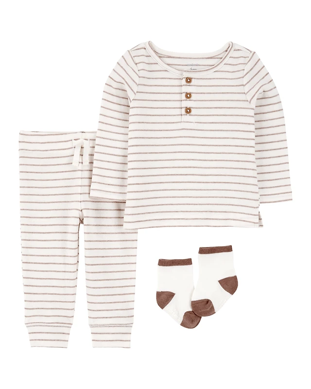 Baby 3-Piece Striped Tee & Pant Set - Ivory