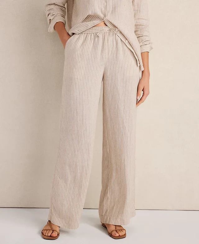 Ann Taylor Haven Well Within Everweave Linen Stripe Relaxed Pants Willow Branch Women's