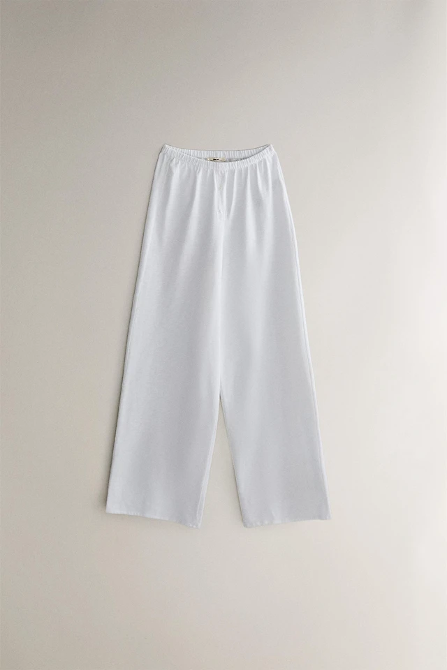 High Waisted Linen-Blend Floral Pull On Wide Leg Pant