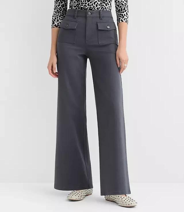 Petite Palmer Wide Leg Crop Pants Contrast Stitch