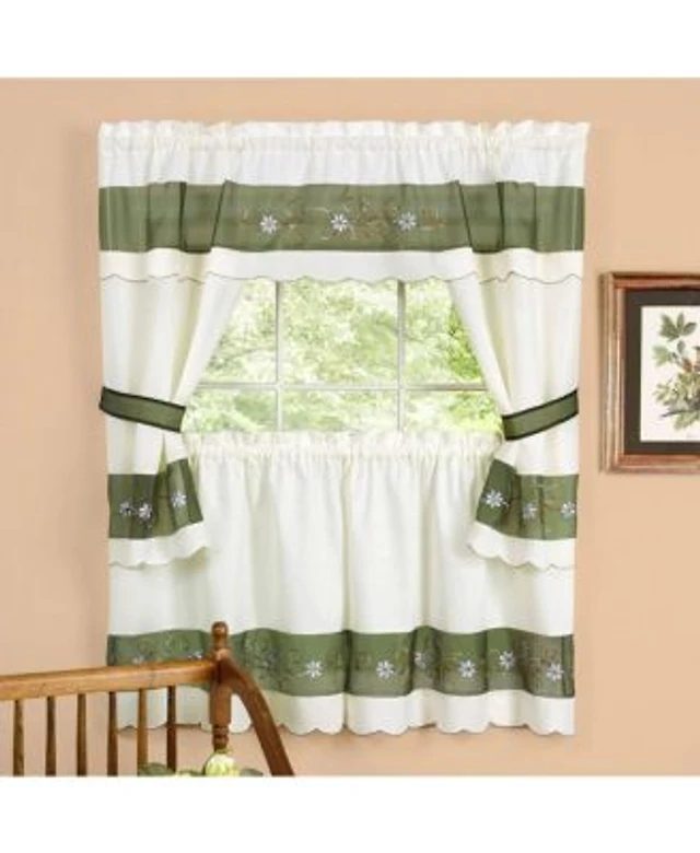 Ellis Curtain Lexington Leaf Pattern on Colored Ground Curtain Tiers 56"x24" Sage