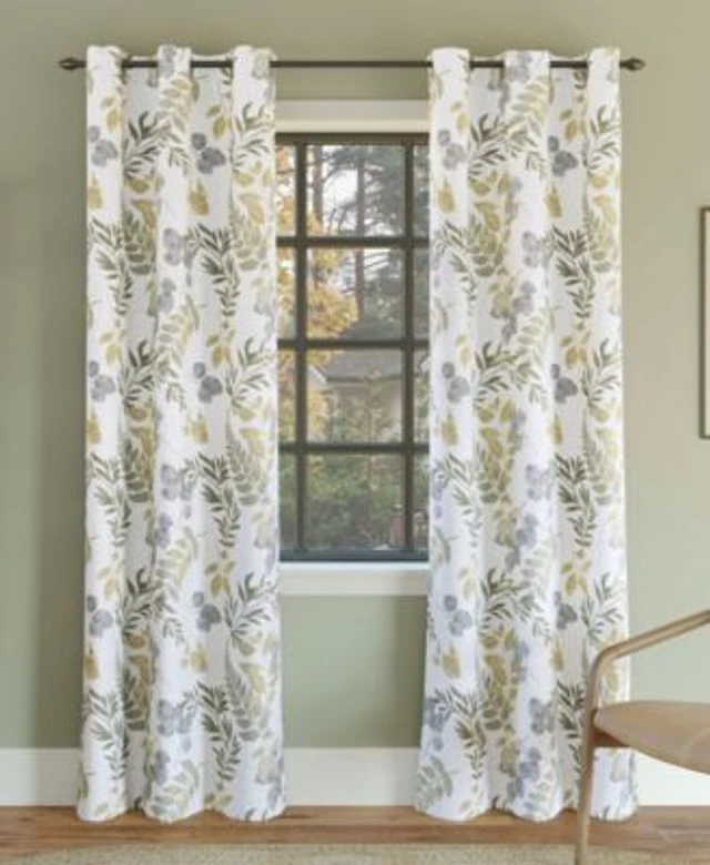 Habitat 100% Polyester Selina Sheer Grommet Leaf Embroidered Curtain Panel 52" x 84" White