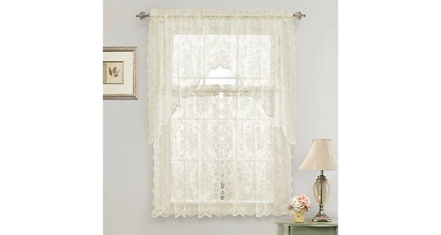 Brew Coffee Shop Semi-Sheer Rod Pocket Kitchen Curtain Valance and Tiers Set
