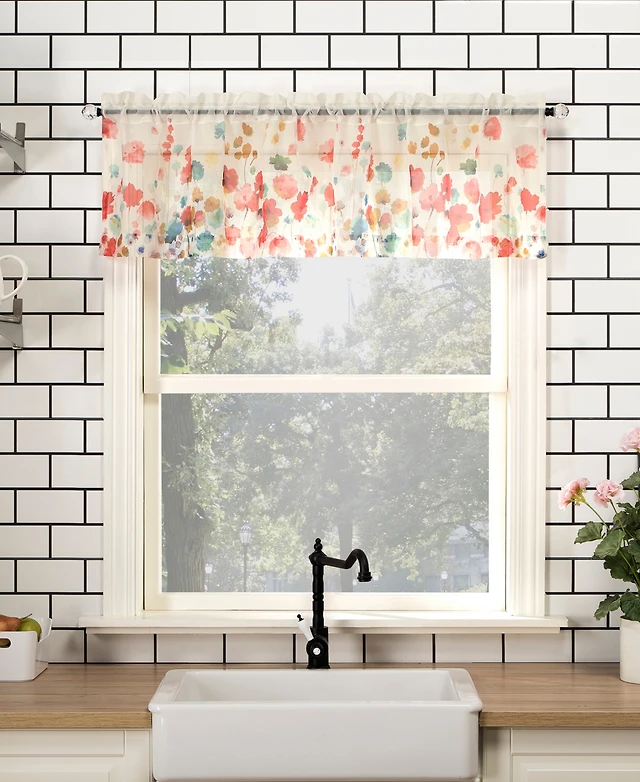 Rosalind Watercolor Floral Semi-Sheer Rod Pocket Kitchen Curtain Valance