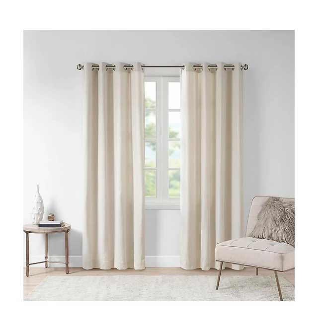 Half Price Drapes Off White Grommet Performance Linen Hotel Blackout Curtain