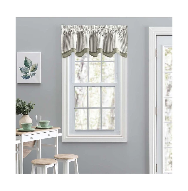 Ellis Curtain Plaza Classic Ticking Stripe Printed on 1.5" Rod Pocket Natural Ground Tailored Valance 58" x 15" Sage