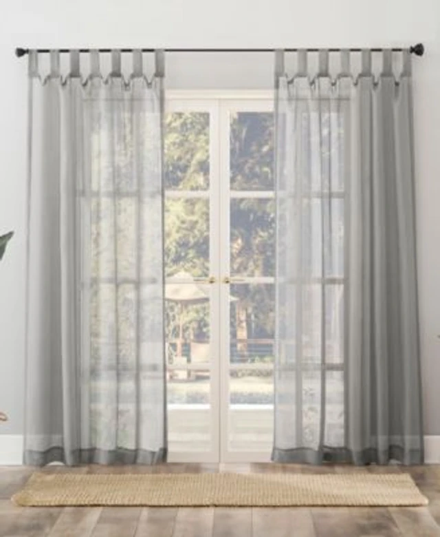 Kate Aurora Living Plaid Sheer French Door Curtain Panel With Tieback - 53 in. W x 45 in. L, Linen