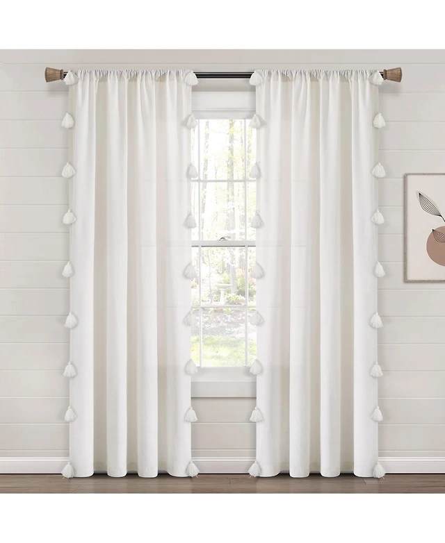 Lush Decor Boho Pom Tassel Linen Window Curtain Panel