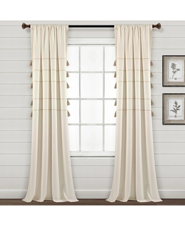 Lucky Brand Solana Thermal Woven Room Darkening Grommet Window Curtain Panel Pair With Tiebacks Collection