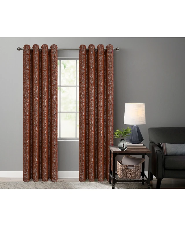 Kate Aurora Basic Jacquard 2 Piece Blackout Grommet Top Hotel Window Curtains - 52 in. W x 84 in. L, Pumpkin Spice