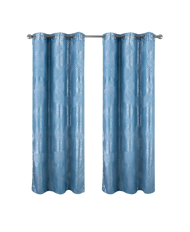 Hlc.me Versailles Lattice Flocked 100% Complete Blackout Thermal Insulated Window Curtain Grommet Panels, Energy Savings & Soundproof