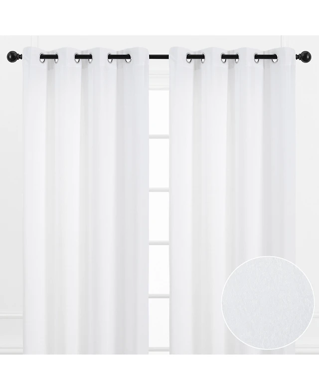 Hlc.me Linda Faux Linen Textured Semi Sheer Privacy Light Filtering Transparent Window Rod Pocket Floor Length Thick Curtains Drapery Panels for Offic