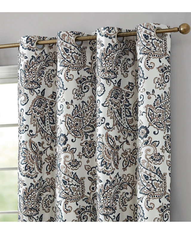 Ellis Curtain Madison Floral Printed Natural Ground 3 X22 Rod Pocket Tailored Panel Pair With Tiebacks 56 X22 X 63 X22 Brick