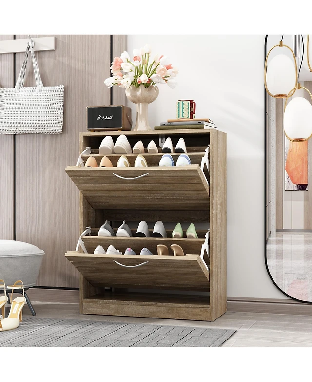 gaomon Shoe Storage Cabinet with 4 Flip Drawers, Wooden Shoe Organizer with Legs, Freestanding Hidden Shoe Rack for Entrance, Foyer, Hallway