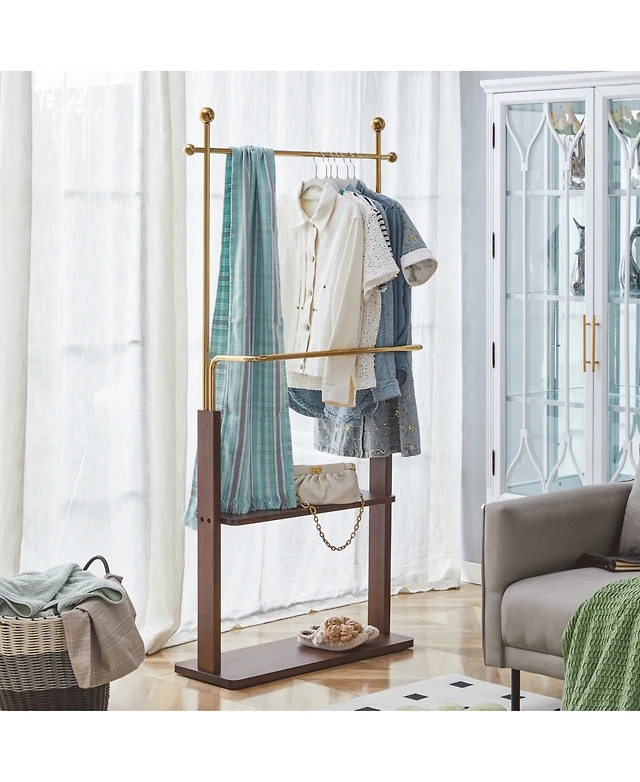 Unho Bamboo Clothes Rail Stand: Garments Storage Rack Shoes Shelf for Bedroom Living Room