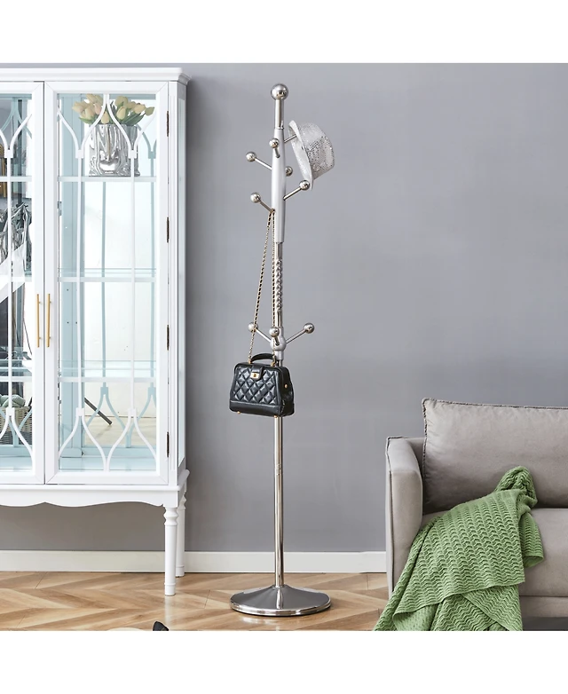 Kings Brand Furniture Hyre 8 Hook Entryway Hall Tree Coat & Hat Rack Stand, Brass