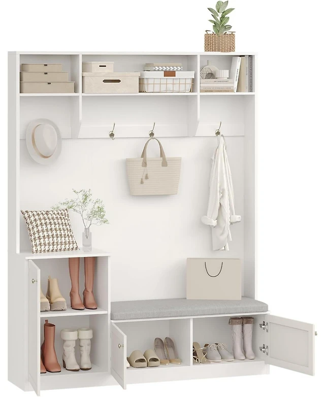 Homcom Shoe Bench and Coat Rack Set for Entryway Hallway,