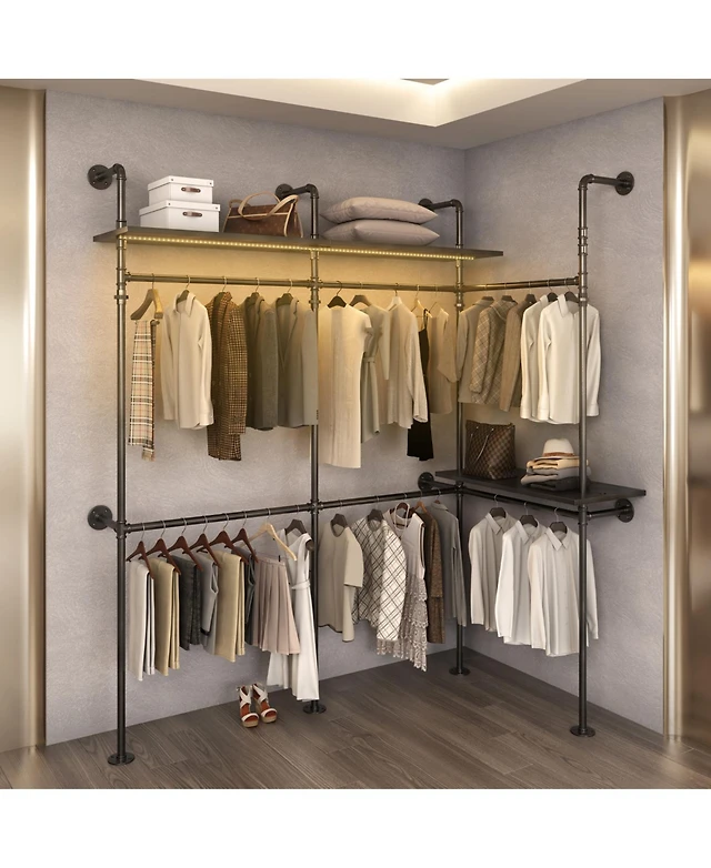 Unho Freestanding Gold Metal Coat Rack: Clothes Stand with Shelves Storage