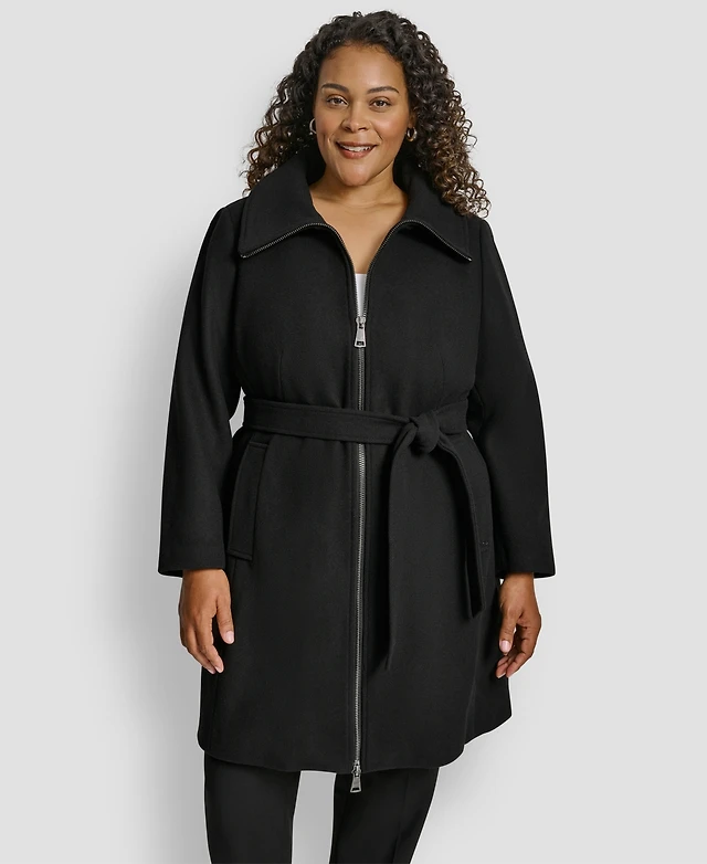 Dkny Plus Belted Zip-Up Wool Coat