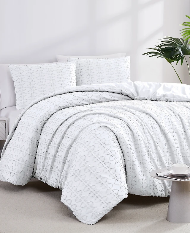 Calvin Klein Solid Puckered Grid 3-Pc. Duvet Cover Set