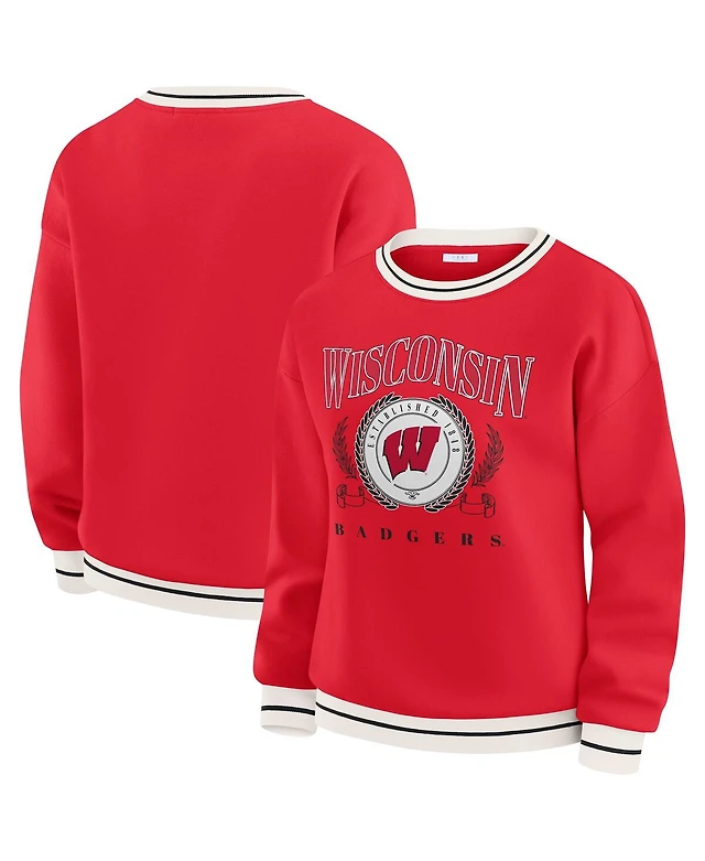 Pressbox Women's Cream Wisconsin Badgers Oversized Chelsea Waist Length Pullover Sweatshirt