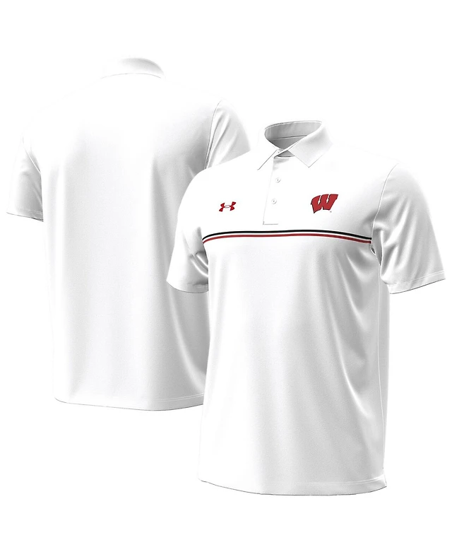 Under Armour Men's White Wisconsin Badgers Performance Drive Chest Stripe Polo Shirt
