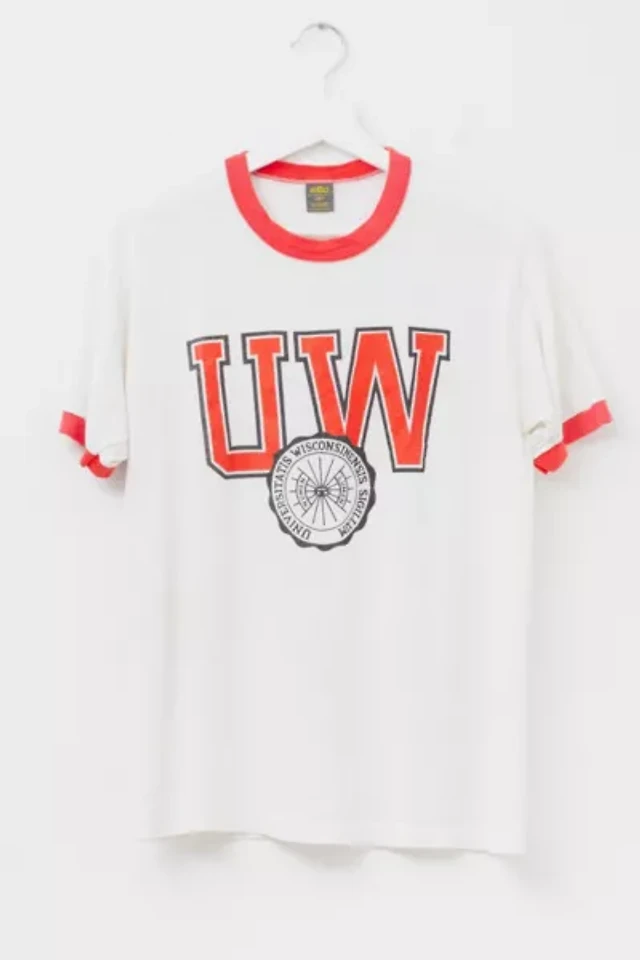 Vintage 1980s University of Wisconsin Graphic Ringer T-Shirt Made in USA