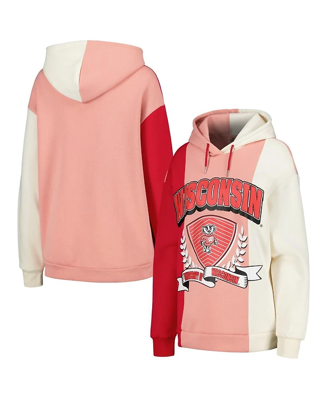 Women's Gameday Couture Red Distressed Wisconsin Badgers Twice As Nice Faded Dip-Dye Pullover Long Sleeve Top
