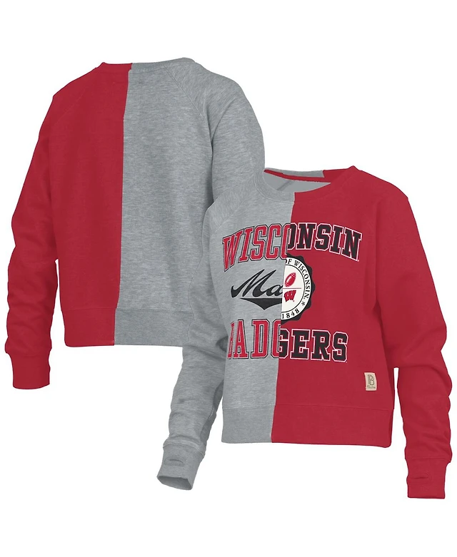 Women's Pressbox Heather Gray Wisconsin Badgers Half and Half Raglan Pullover Sweatshirt