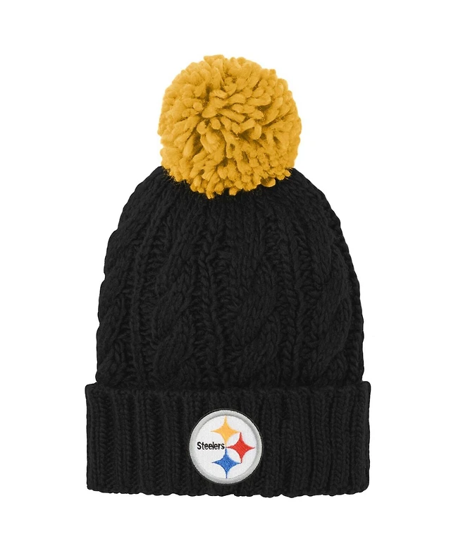 Big Girls Black Pittsburgh Steelers Team Cable Cuffed Knit Hat with Pom