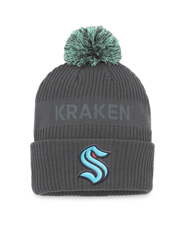 Men's Fanatics Charcoal Chicago Blackhawks Authentic Pro Home Ice Cuffed Knit Hat with Pom