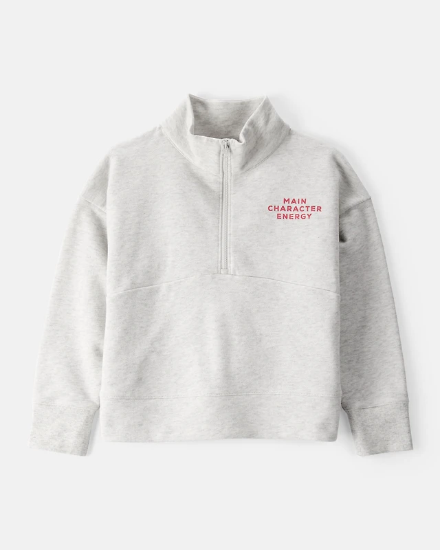 Girls Main Character Energy Quarter-Zip Pullover Sweatshirt - Grey