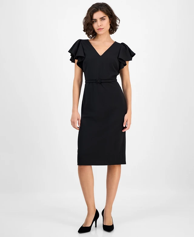 Calvin Klein Women's Bell-Sleeve Trapeze V-Neck Dress