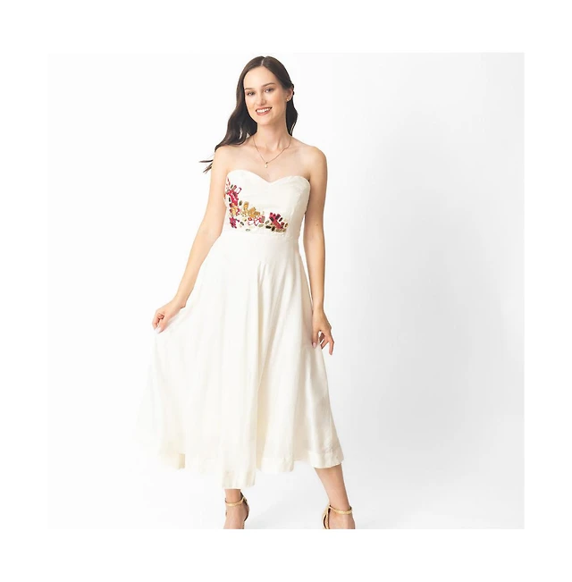 Mac Duggal Women's Crepe Strapless Midi Dress with 3D Flower Detail