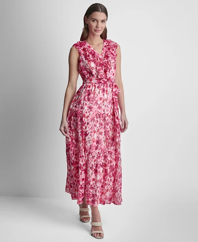 CeCe Women's Tiered Flounce-Sleeve Shirt Dress