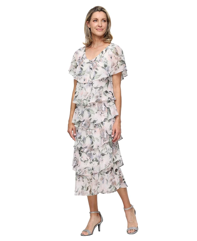 Ny Collection Women's Flutter-Sleeve Tiered Dress