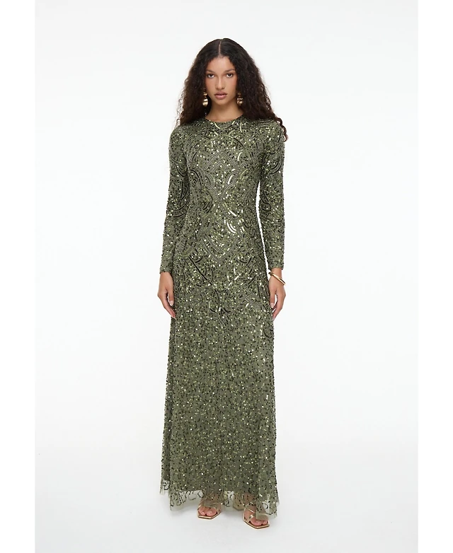 Beauut Women's Embellished Sequin Beaded Maxi Corset Dress
