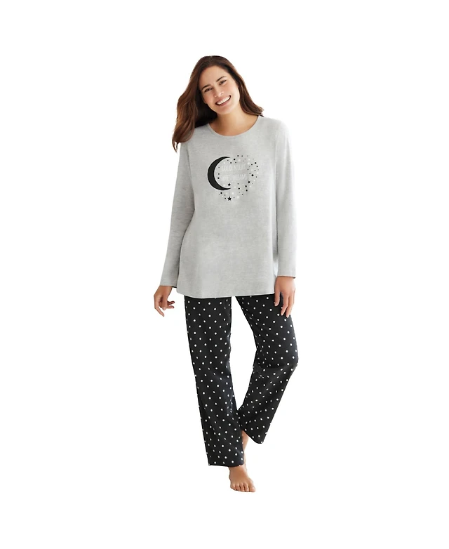 Dreams & Co. Women's Plus Printed Henley Pj Set
