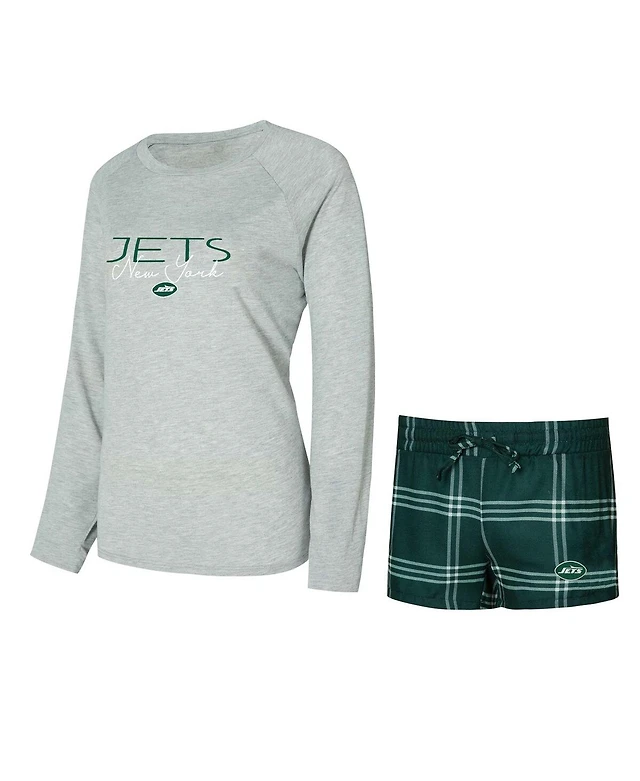 Women's Concepts Sport Heather Black, Heather Hunter Green Milwaukee Bucks Team Raglan Long Sleeve T-shirt and Shorts Sleep Set