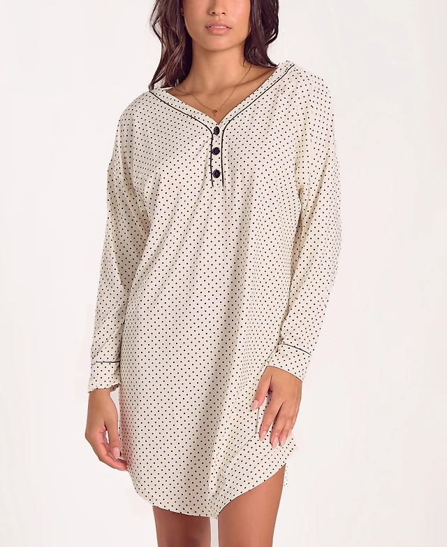 ellos Women's Plus Long Sleeve Henley Sleep Tee