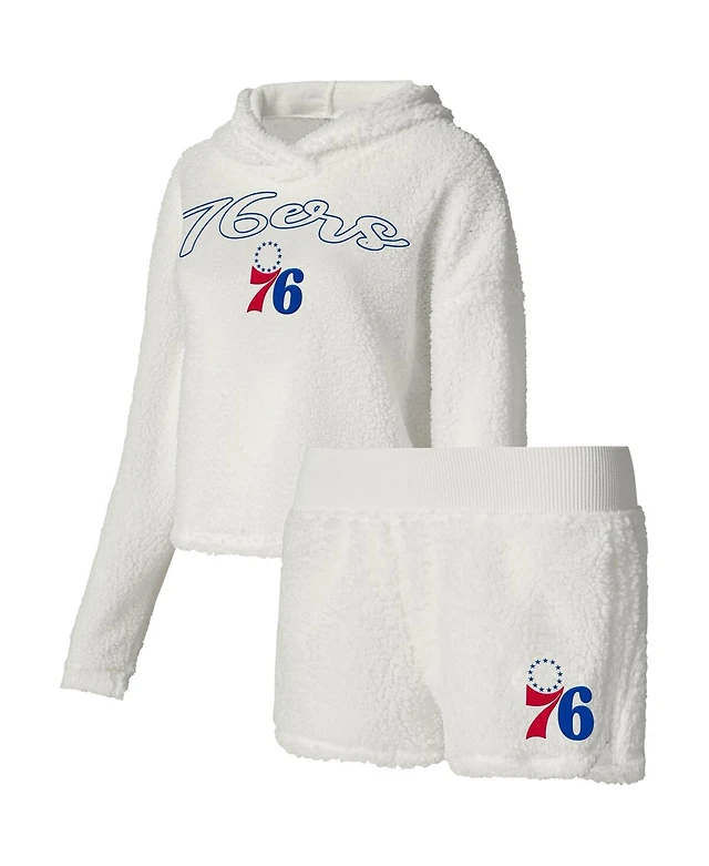 Women's College Concepts Cream Philadelphia 76ers Fluffy Long Sleeve Hoodie T-shirt and Shorts Sleep Set